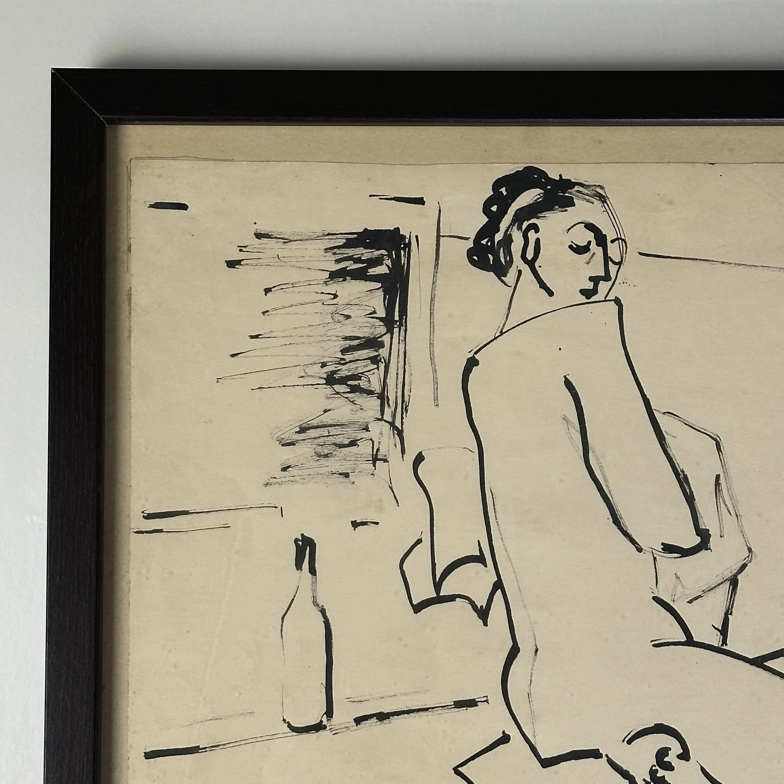 Vintage Expressionist Nude Figurative Drawing, Signed (Japanese Ink on Paper)