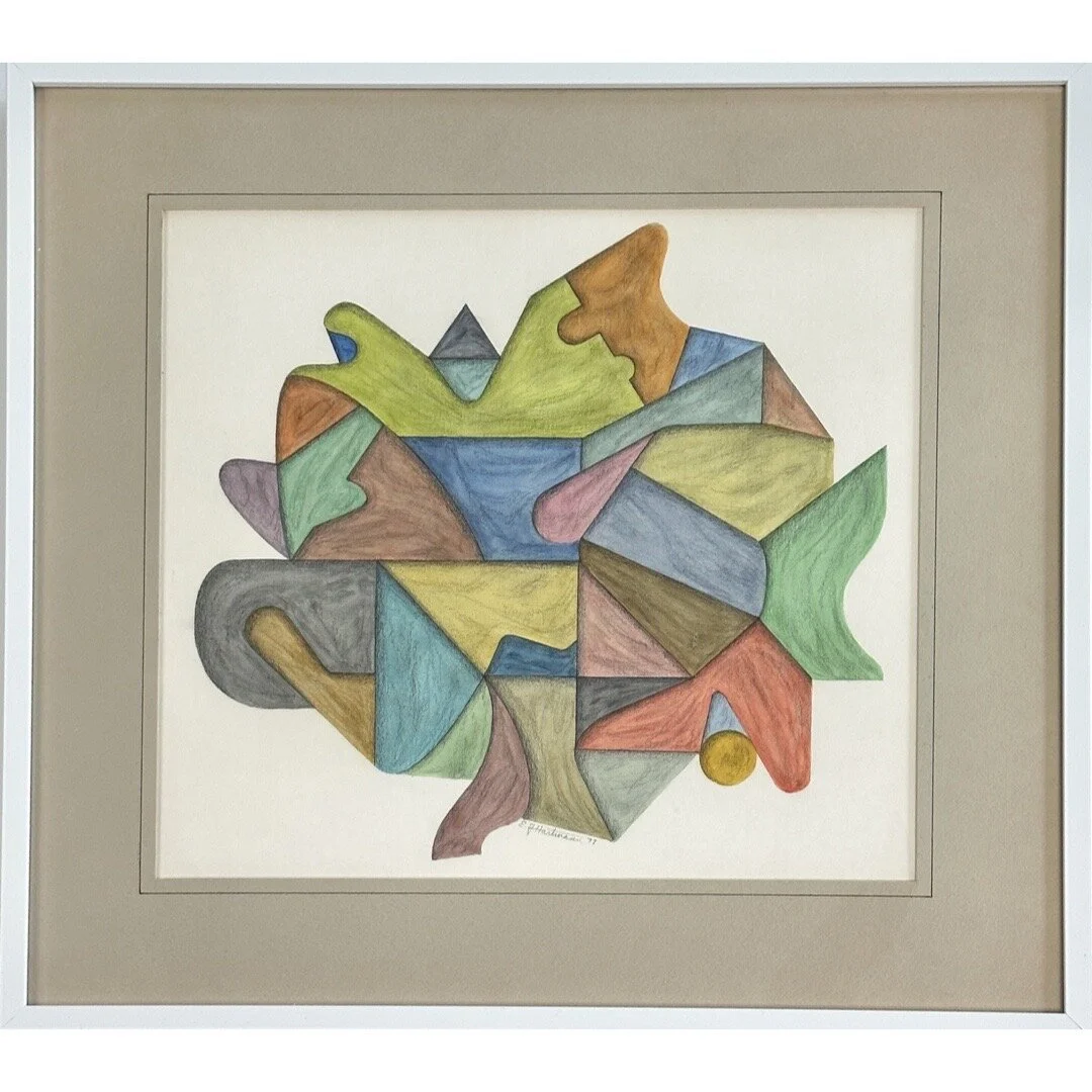 Clayton Anderson (b. 1943) — Vintage Abstract Postmodernist Interior with Bird Drawing on Paper