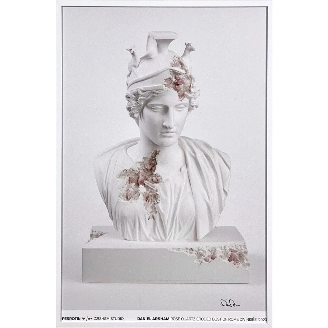 Daniel Arsham - Rose Quartz Eroded Bust of Rome Divinisée #40/150, Signed (2020). Housed in a new white metal frame under UV filtering non glare acrylic.