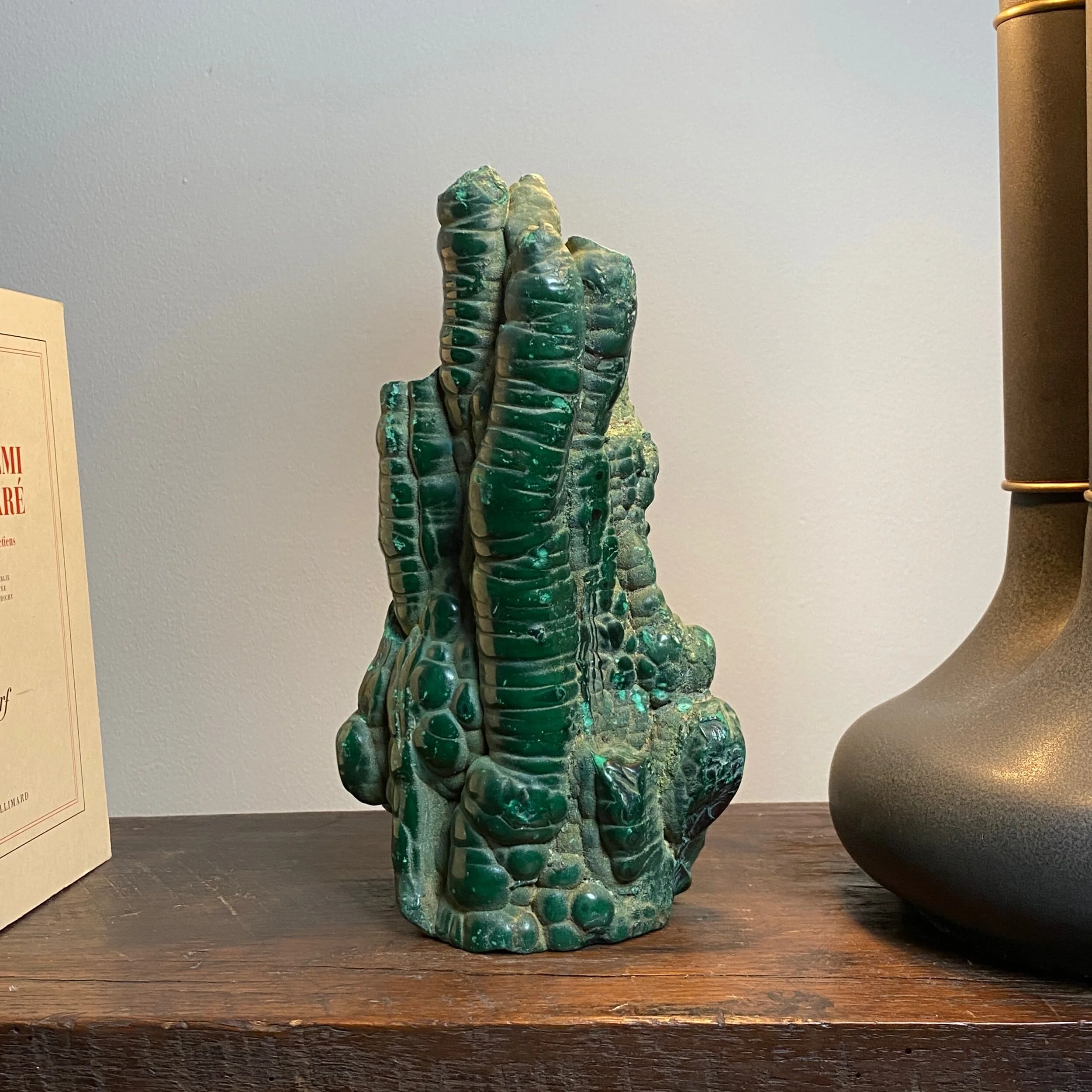 Folk Art Malachite Coral Sculpture. Areas of polished stone blending with the rough/unpolished. Beautiful addition to the Wunderkammer.