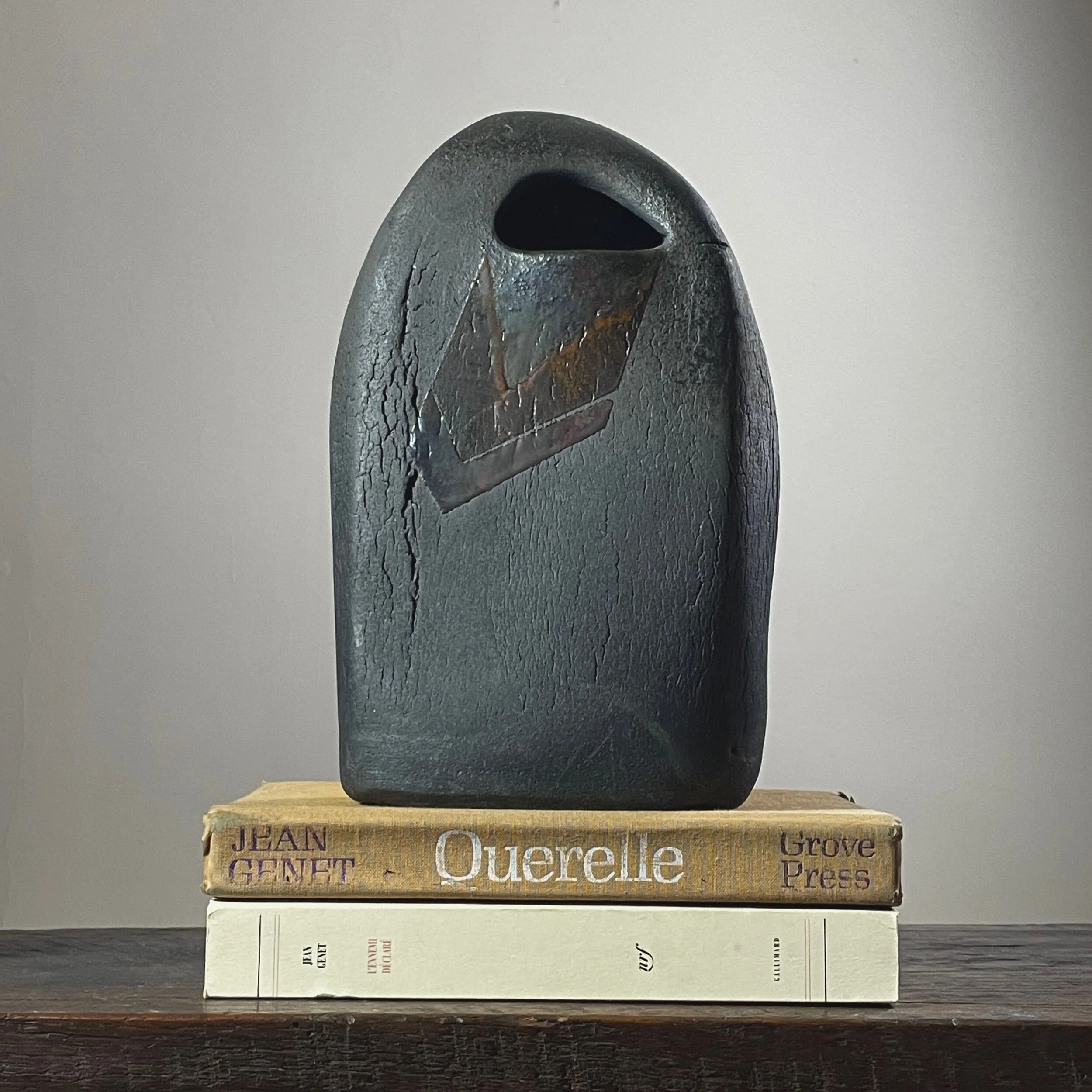 Geraldine Shapiro - Black Modernist Wood Fired Clay Vessel (ca. 1970, Signed)