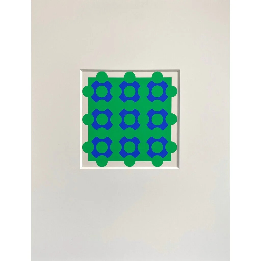 Victor Vasarely - “Constellation Green Blue” Serigraph (Matted, ca.1965). Attached to a archival backboard with an acid free beveled matte. In fine condition.