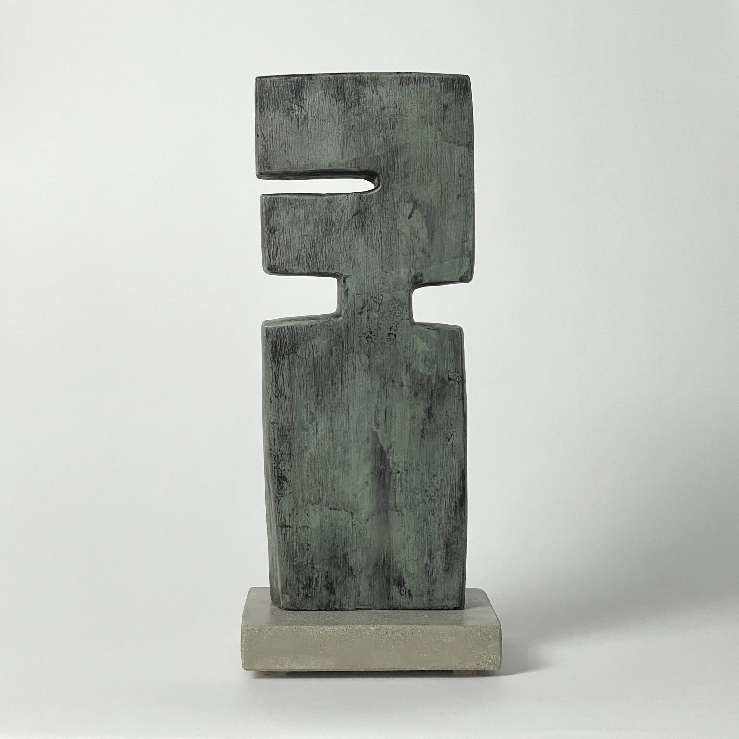 Vintage Modernist Cement Statue, Signed. Pale patina style green with cement base. In very good condition with minimal wear conducive with age. Signed on the bottom.